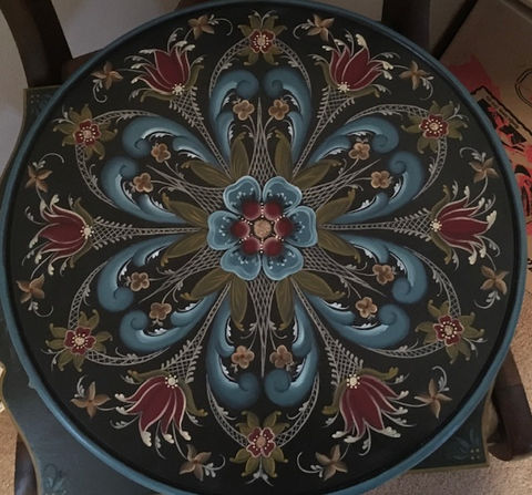 Rosemaling is a traditional Norwegian style of folk art that means "rose painting" or "decorative painting." It flourished during the 18th and 19th centuries in rural Norway. The stylized scrolls and flowers in combination with rustic folk art and woodcarving designs were greatly influenced by Baroque and Rococo styles from other parts of Europe. Styles and techniques varied from region to region. Different styles are named after the region of Norway or the valley (dal) in which they were practiced. The art form came with Norwegian immigrants to places like Minnesota, Wisconsin and Iowa and blossomed out from there. There are still many Norwegian families that teach rosemaling, along with many others who have learned it, loved it and share it.